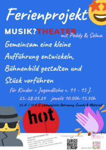Jede*r, der sich für diese Themenbereiche interessiert, ist herzlich eingeladen, bei diesem kleinen Schauspielprojekt in den Osterferien mitzumachen.